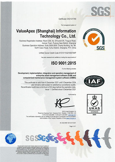 ValueApex (Shanghai) Information Technology Co., Ltd. is a Sino-French ISV (Independent Software Vendor), rendering equipment & asset maintenance management solutions and services.